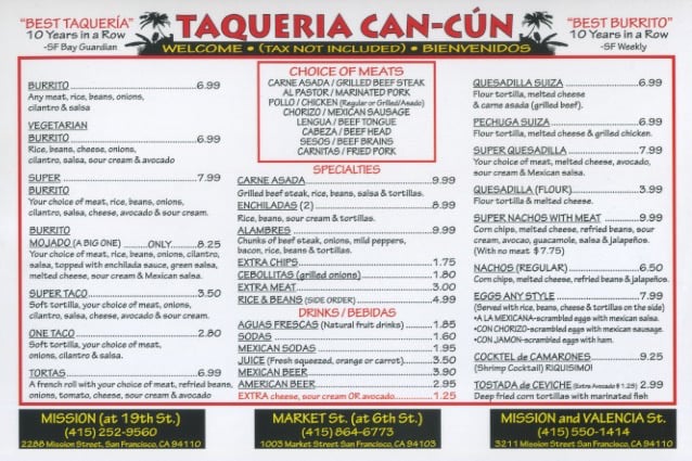 Welcome to Taqueria Cancun, a beloved Mexican gem nestled in the heart of San Francisco’s Mission District. This casual eatery serves up a vibrant menu that dazzles with mouthwatering flavors. Specializing in classic dishes, you’ll find options like Carne Asada, Al Pastor, and savory Carnitas tacos, each made to perfection.